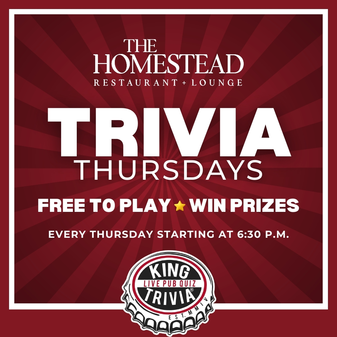 Think fast. Play well. Win big. Every Thursday night at The Homestead, King Trivia turns the lounge into the most competitive — and most fun — table in the Catskills.